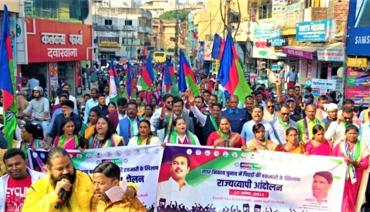 निकाय चुनाव में ओबीसी को दरकिनार किए जाने के खिलाफ आजसू पार्टी ने किया राज्यव्यापी आंदोलन…….