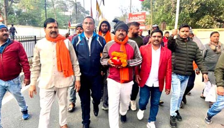 आम लोगों से 22 जनवरी को पूजा-अर्चना करने का आह्वान करते भाजपा नेता अनिल टाईगर.