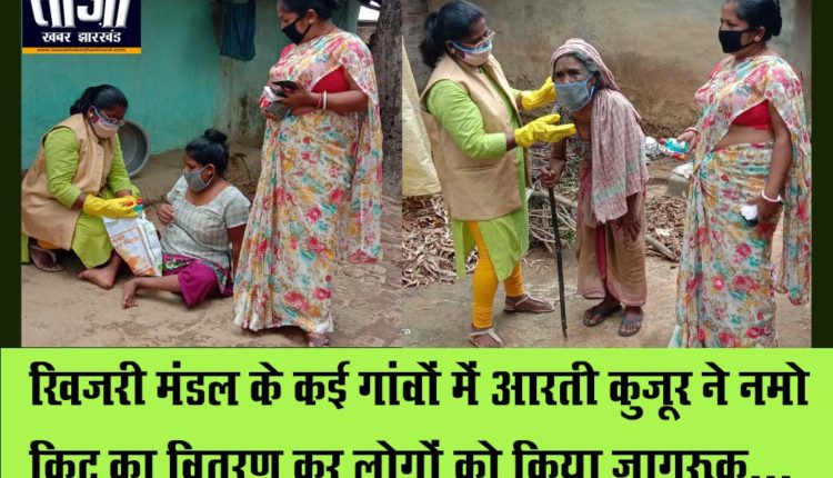 रांची(नामकुम)- बुधवार को भाजपा खिजरी मंडल, महिला मोर्चा की बहनों द्वारा खिजरी मंडल के कई गांवों में मोदी किट का वितरण किया गया। इसके तहत गरीब लाचार और जरूरतमंद लोगों को चिन्हित कर, नमो कीट दिया गया, साथ ही साथ लोगों को घर पर ही सुरक्षित रहने की हिदायत दी गयी और स्वयं एवं आसपास के लोगों को भी साफ सफाई पर विशेष ध्यान देने के लिए कहा गया।