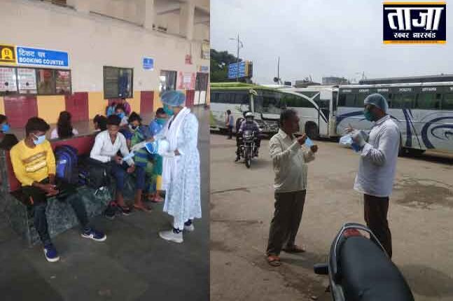 रांची के खादगढ़ा बस स्टैंड में चलाया गया अपना मास्क सही से लगाओ अभियान….