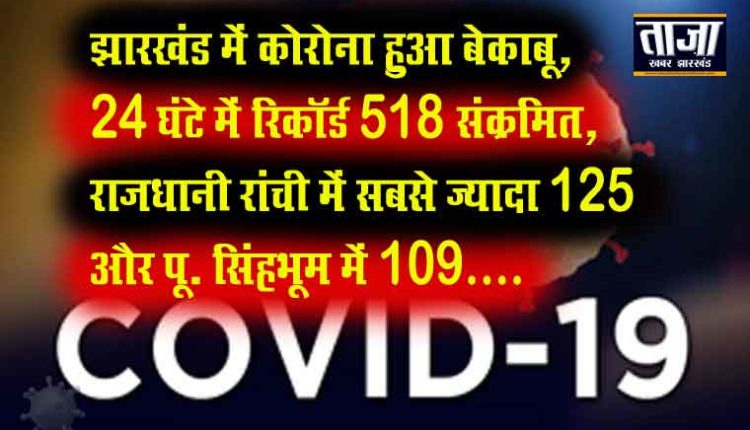 झारखंड में कोरोना हुआ बेकाबू, 24 घंटे में रिकॉर्ड 518 संक्रमित, सबसे अधीक रांची में 125 और पूर्वी सिंहभूम में 109…