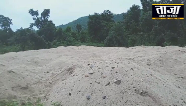 चंदुरा गांव में अवैध तरीके से निकाल कर रखा गया बालू का स्टॉक।