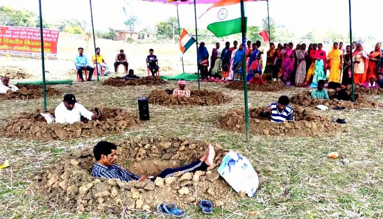 कर्जमाफी नहीं होने और ऋण वसूली पर सख्ती से नाराज किसानों ने खेत में लगाई समाधि..