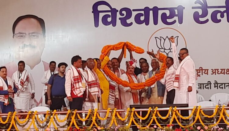 रांची: आज झारखंड में आकर्षण का केंद्र रहे भाजपा के राष्ट्रीय अध्यक्ष जेपी नड्डा। भारतीय जनता पार्टी राजधानी रांची के ऐतिहासिक मोराबादी मैदान में धरती आबा बिरसा मुंडा विश्वास महारैली आयोजित की, जिसमें मुख्य अतिथि सह मुख्य वक्ता के तौर पर भाजपा के राष्ट्रीय अध्यक्ष जेपी नड्डा झारखंड पहुंचे। इस दौरान एयरपोर्ट में उनका सांस्कृतिक एवं पारंपरिक तरीके से भव्य स्वागत किया गया। एयरपोर्ट से मोटरसाइकिल रैली की शक्ल में बिरसा चौक पहुंच भगवान बिरसा मुंडा को जेपी नड्डा ने नमन किया। जिसके बाद रैली ऐतिहासिक मोराबादी मैदान पहुंची। इस दौरान जगह-जगह भाजपा राष्ट्रीय अध्यक्ष जेपी नड्डा का अभिनंदन किया गया।