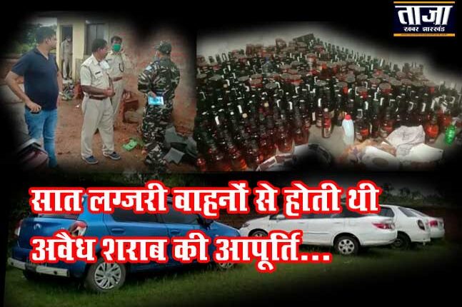 30 लाख रुपये मुल्य का अवैध शराब बरामद, लग्जरी कारों से दूसरे राज्यों में किया जाता था आपूर्ति, 7 लग्जरी कार भी बरामद…