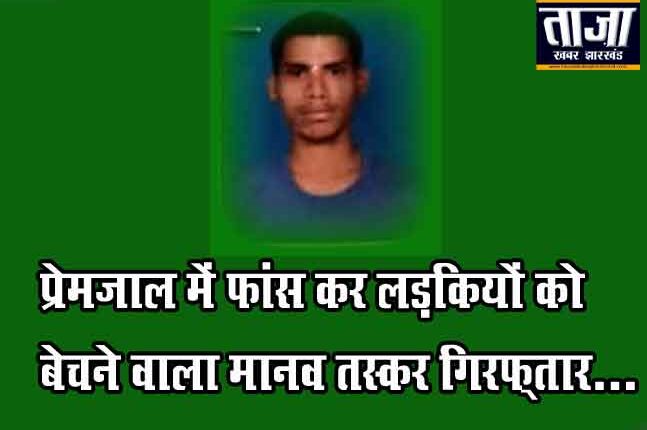 रांचीः गांव की भोली-भाली लड़कियों को अपने प्रेमजाल में फांस कर दिल्ली ले जाकर बेचने वाले मानव तस्कर, सुभाष सिंह को ईटकी पुलिस ने गिरफ्तार करने में सफलता पाई है। फिलहाल सुभाष सिंह को कोतवाली थाना परिसर में स्थित एंटी ह्युमन ट्रैफिकिंग यूनीट में लाकर पुछताछ किया जा रहा है।