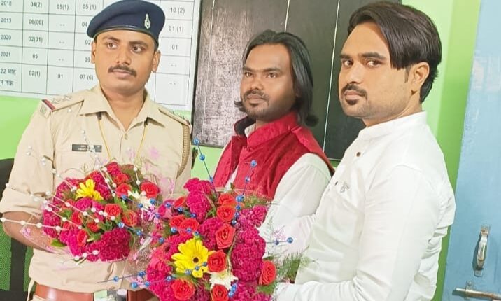 राँची: कांके क्षेत्र के समाजसेवी सह झामुमो युवा नेता जुल्फान खान और झामुमो युवा नेता सह ऊपर कोनकी अंजुमन कमिटी के नयाब सेक्रेटरी वसीम अकरम ने रविवार को पिठोरिया थाना के नए थाना प्रभारी अभय कुमार को बुके देकर स्वागत किया।