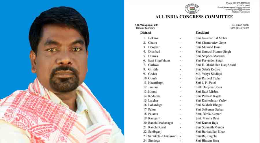 रांची(कांके प्रखंड): शनिवार को कांग्रेस पार्टी के राष्ट्रीय महासचिव के सी वेणुगोपाल ने झारखण्ड कांग्रेस के 25 जिला अध्यक्षों कि सूची जारी की है, जिसमें कांके प्रखंड के प्रमुख सह कांग्रेस नेता सोमनाथ मुंडा को ग्रामीण कांग्रेस, रांची जिला का अध्यक्ष नियुक्त किया गया है, वहीं रांची जिला महानगर अध्यक्ष के रूप में पुनः एक बार फिर से कुमार राजा को जगह दी गई है।