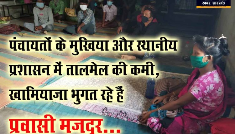 जिला प्रशासन के इस आदेश के बावजुद दूसरे प्रदेशों से झारखंड के विभिन्न पंचायतों में पहुंच रहे प्रवासी मजदूर या तो स्वयं ही गांव के स्कूल भवन में रह रहे हैं, या फिर अपने घर में ही हॉम क्वारंटीन पर हैं। यहां दोनों ही स्थिति में कोरोना संक्रमण का खतरा बढ़ता नजर आ रहा है। क्योंकि जो भी प्रवासी मजदूर स्कूल भवनों में शरण लिए हुए हैं उन्हें पूर्व में पंचायत की मुखिया द्वारा कोई सुविधा उपलब्ध नही करवाया गया, जिसके कारन इनके परिजन ही इन मजदूरों को हर सुविधा उपलब्ध करवा रहे हैं, यहां तक की भोजन भी। मजदूरों के परिजन लगातार मजदूरों के संपर्क में आ रहे हैं साथ ही ये मजदूर गांव के ही सामुहिक जल स्त्रोत का उपयोग कर रहे हैं, जो पूरे गांव वालों के लिए खतरे की घंटी है।