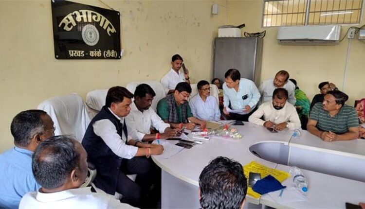 रांची(कांके प्रखँड)- बुधवार को कांके प्रखंड कार्यालय के सभागार मे झारखंड सरकार द्वारा चलाए जा रहे सभी विकास योजनाओं की समीक्षा, बैठक आहुत कर की गई। बैठक में मुख्य रूप से कांके विधायक सुरेश कुमार बैठा, प्रखंड प्रमुख सोमनाथ मुंडा, उप-प्रमुख अंजय बैठा, कांके बीडीओ सह प्रभारी अंचलाधिकारी विजय कुमार, सीआई चितरंजन टूटू मौजूद रहें।