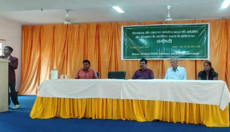रांचीः विस्थापन और दमन पर आधारित अर्थनीति और झारखण्ड की आतंकित जनता के भविष्य’ विषय पर एक दिवसीय संगोष्ठी का आयोजन विस्थापन विरोधी जनविकास आन्दोलन, झारखण्ड इकाई द्वारा एस. डी. सी. सभागार, रांची में किया गया। अध्यक्ष मंडली में शैलेन्द्र नाथ सिन्हा, बच्चा सिंह, बेबी तुरी और नरेश भुइयां शामिल रहें।