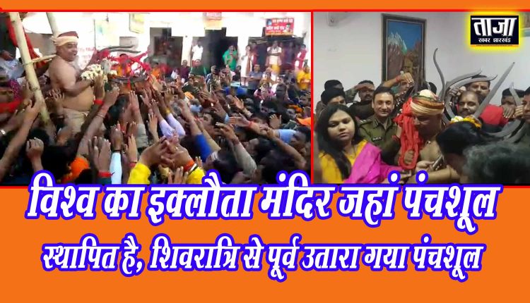 विश्व का इक्लौता मंदिर जहां पंचशूल स्थापित है, शिवरात्री से दो दिन पूर्व बाबा मंदिर से पंचशूल उतारा गया..