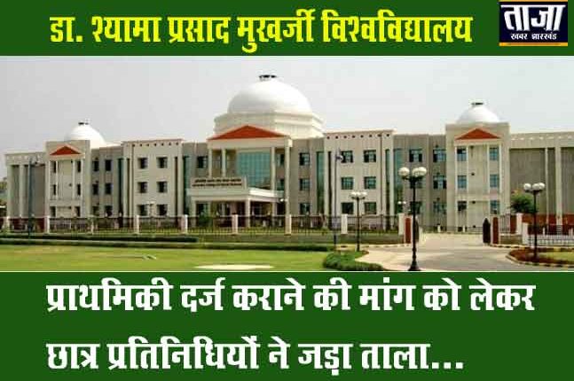 डा. श्यामा प्रसाद मुखर्जी विश्वविद्यालय के पूर्व रजिस्ट्रार और उनके पुत्र पर प्राथमिकी दर्ज करने की मांग को लेकर छात्र प्रतिनिधियों ने डा. श्यामा प्रसाद मुखर्जी विश्वविद्यालय के स्कूल ऑफ मैनेजमेंट विभाग में जड़ा ताला.