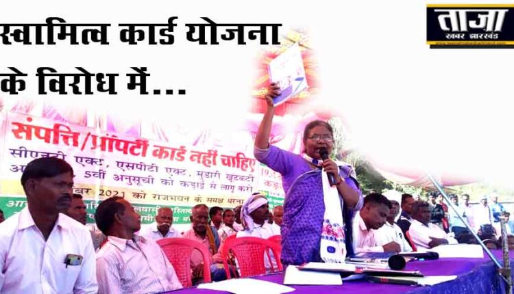 स्वामित्व कार्ड योजना के विरोध में दूसरी बार खूंटी में आयोजित किया गया विरोध सभा।