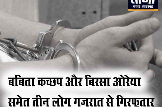 आरोपियों में सामू और बिरसा ओरेया जो खूंटी जिला के निवासी हैं, दक्षिण गुजरात में तापी जिले के व्यारा से गिरफ्तार किया गया है, जबकि तीसरे आरोपी बबीता कच्छप, जो रांची की रहने वाली है, उसे महिसागर जिले के संतरामपुर गांव से गिरफ्तार किया गया है।