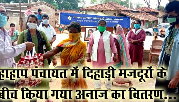 वर्तमान में कोरोना महामारी से पूरे विश्व सहित भारत देश व झारखंड राज्य में लॉक डाउन है, ऐसी स्थिति में सुदूरवर्ती गांव के लोग जो प्रतिदिन दिहाड़ी मजदूरी करके अपने परिवार को भरण पोषण किया करते थें, उनके समक्ष भूखमरी समस्या खड़ी हो गई थी। हाहाप पंचायत के मजदूरों की इस समस्या को देखते हुए जिप सदस्या आरती कुजूर ने योगदा सत्संग के अधिकारियों के पास मदद की गुहार लगाई, जिसके बाद योगदा सत्संग के अधिकारियों सहयोग करने की हामी भरी, इसी के मद्देनजर शनिवार को हाहाप पंचायत के विभिन्न गांव जैसे हाहाप, लिबुडीह, हेसापीढ़ी, सरवल, सपारोम, बारूडिह, लदनापीढ़ी गांव में लगभग 270 लोगों के बीच अनाज का वितरण किया गया।