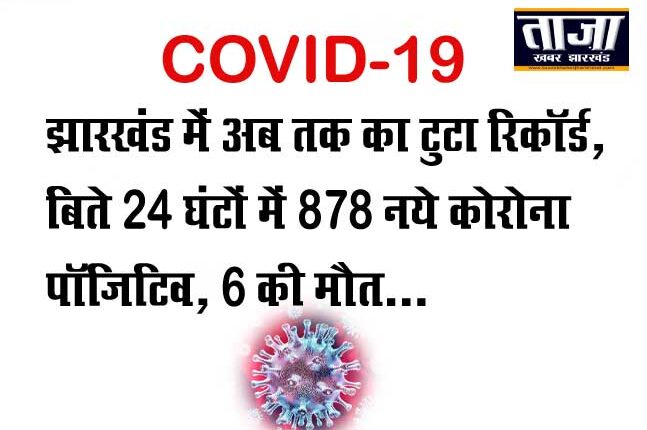 राँची: झारखंड में कोविड-19 की टेस्ट में तेजी के साथ कोरोना मरीजों की संख्या में भी तेजी से ईजाफा देखने को मिल रहा है। बिते 24 घंटों में अब तक का रिकार्ड 878 कोरोना पॉजिटिव मरीज पाए गए हैं, जिसके साथ ही कोरोना पॉजिटिव मरीजों की कूल संख्या बढ़ कर 11366 हो गई है। वहीं बिते 24 घंटे में 6 लोगों की मौत भी हुई है, जिसके साथ कोरोना से मृतकों की संख्या 110 हो चुकी है। जबकि 4343 कोरोना संक्रमित मरीज स्वस्थ भी हुए हैं।